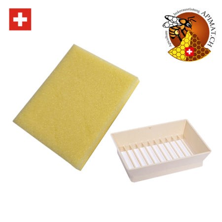 Dieses Markiergitter, ein bewährtes und modernisiertes Modell aus hygienischem Kunststoff, ermöglicht es, die Königin auf der einen Seite zu fixieren, um sie zu zeichnen oder zu markieren, während sie auf der anderen Seite freigelassen wird, während Farbe oder Kleber trocknen. Ausgestattet mit einem Schaumstoffpolster für eine schonende Fixierung, ist es kompakt (73 × 52 × 18 mm) und leicht (10 g). Wird in einem wiederverschließbaren Beutel für optimale Aufbewahrung geliefert.